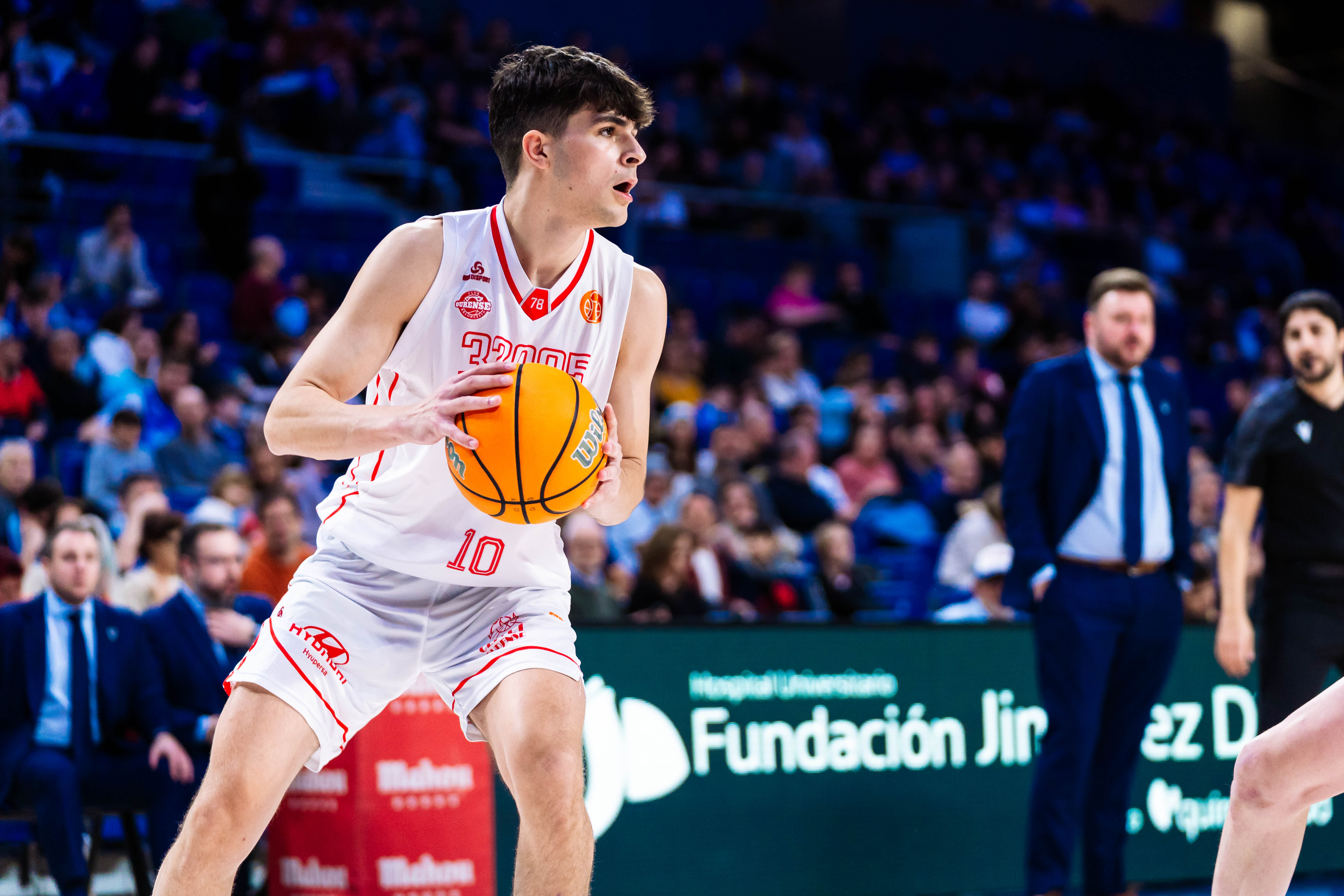 O choque comezou cun Estudiantes máis acertado, que colleu as primeiras vantaxes no marcador. O Cloud.gal Ourense Baloncesto reaccionou con puntos de Kentwan Smith e Romaro Gill, e foi asentándose no partido grazas ao traballo interior e á achega de Gabe Kalscheur. Aínda así, o conxunto madrileño mantivo o control e pechou o primeiro cuarto por diante (24-18).