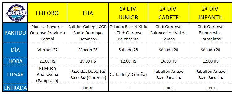 La semana próxima regresan además los conjuntos cadete e infantil. Estos son los horarios de los partidos de todos nuestros equipos en este próximo fin de semana del 27 y 28 de noviembre.