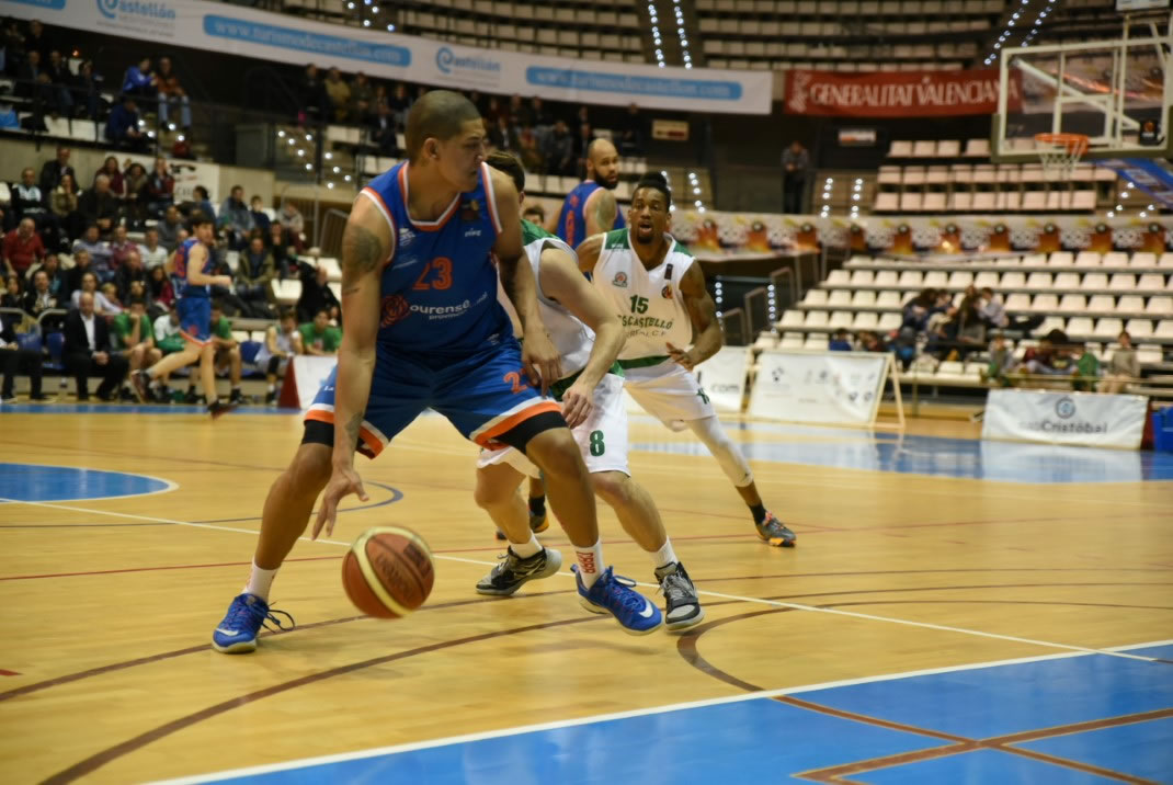 Un parcial de 0-7 de salida coincidente con una breve defensa zonal permitió al Ourense Provincia Termal devolver la renta favorable de nuevo por encima de la veintena de puntos. Durante unos minutos más, el conjunto de Gonzalo Gª de Vitoria pareció controlar el partido, pues Ourense dominaba el rebote (excepcional Rowley, 16 capturas al final de la noche) y administraba la ventaja de forma efectiva (35-58, min. 27). Un parcial de 12-3 iniciado con dos pérdidas ourensanas devolvió tras muchos minutos a la vida a Castelló, que a final de cuarto perdía por dieciséis (49-65, min. 30).