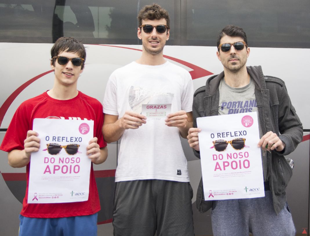 Concretamente, nuestro equipo colaboró posando el pasado lunes con las gafas solidarias que un año más la asociación pone en venta por el Día Mundial Contra el Cáncer de Mama. En nuestro caso, estas gafas podrán ser compradas por todos los interesados este sábado en el Pazo dos Deportes Paco Paz en el partido que enfrentará desde las 19.00 horas al Ourense Provincia Termal y al Melilla Baloncesto. No dudes y hazte con ellas. ¡Por solo cinco euros colaborará a la investigación de una de las enfermedades graves que tristemente más afectan a mujeres!