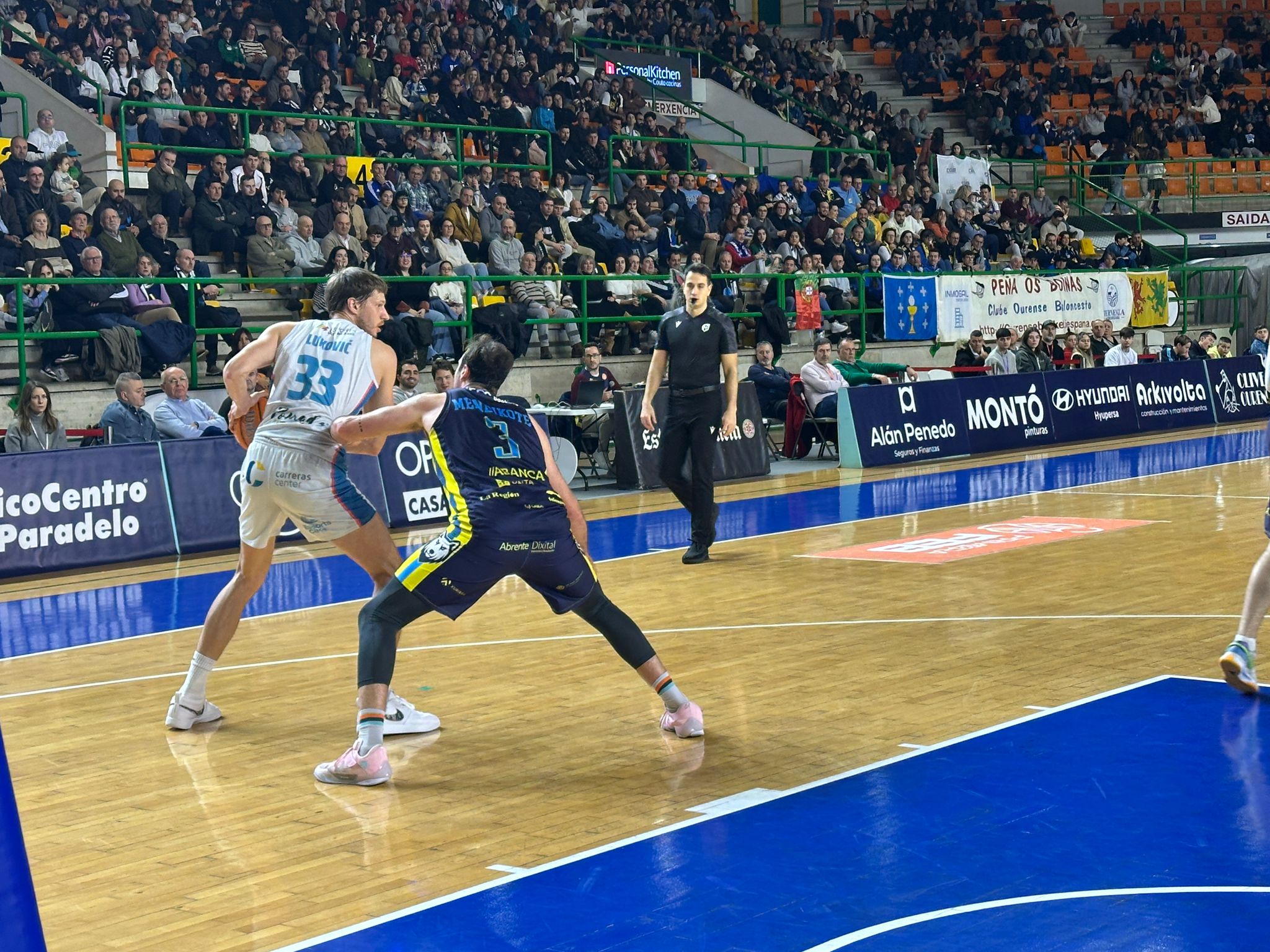 O primeiro cuarto foi unha mostra de intensidade por parte dos dous conxuntos. O Aircargobooking Ourense saíu cunha boa posta en escena, dominando o rebote e atopando boas opcións no ataque. A pesar diso, o Hestia Menorca mantívose no partido, evitando que os locais abrisen unha fenda importante (21-19).